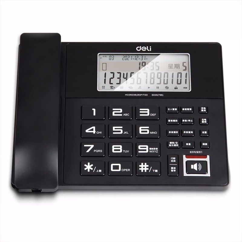 得力(deli)黑色錄音電話機 l固定座機 辦公家用 來電顯示 4G內(nèi)存卡 自營