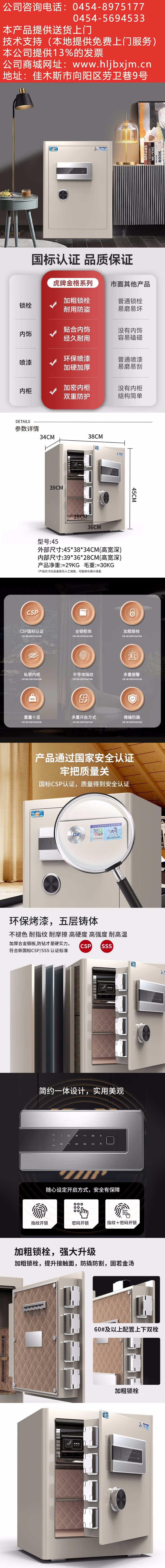 虎牌保險柜家用辦公小型電子密碼免鑰匙保管柜全鋼防盜床頭保險箱可入墻入柜 博瑞系列 35cm 咖啡金