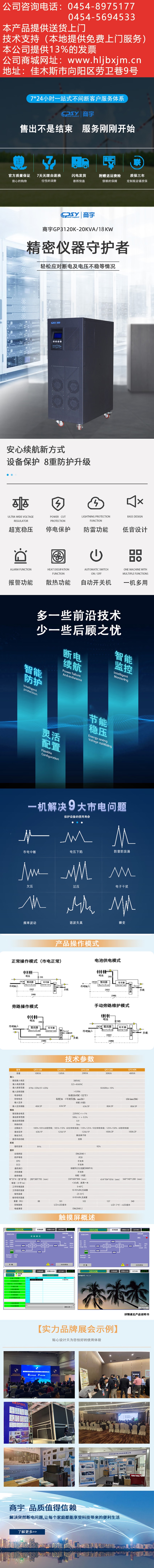 商宇UPS不間斷電源在線式GP3120K三進(jìn)單出20kVA/18kW工頻機(jī)可外接電池和電池箱 自營