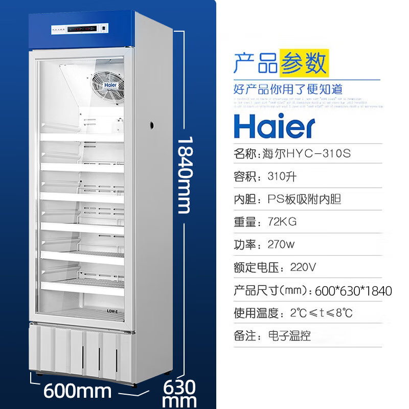 海爾(Haier)醫(yī)用冷藏柜2-8℃藥品陰涼冷藏箱風(fēng)冷無(wú)霜冰箱醫(yī)藥醫(yī)療機(jī)構(gòu)醫(yī)院試劑保鮮柜實(shí)驗(yàn)室展示冰箱HYC-310S 自營(yíng)