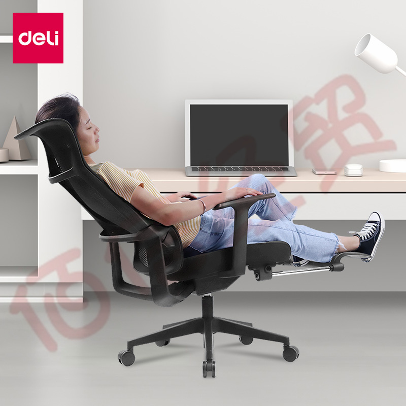 ■得力 deli 大角度可躺帶腳托午休電腦椅 人體工學(xué)椅 舒適辦公椅 91018 經(jīng)典黑