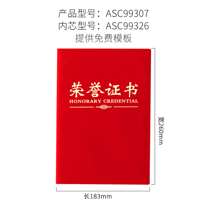 晨光尊賢絨面榮譽(yù)證書8K ASC99307 自營(yíng)