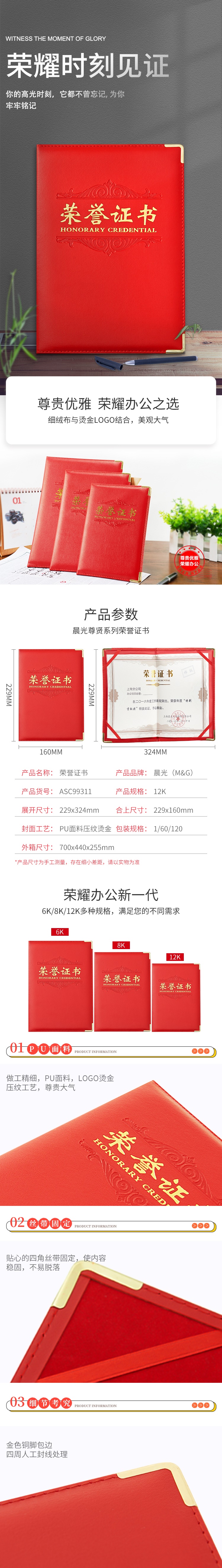 晨光尊爵PU榮譽(yù)證書12K ASC99312 自營