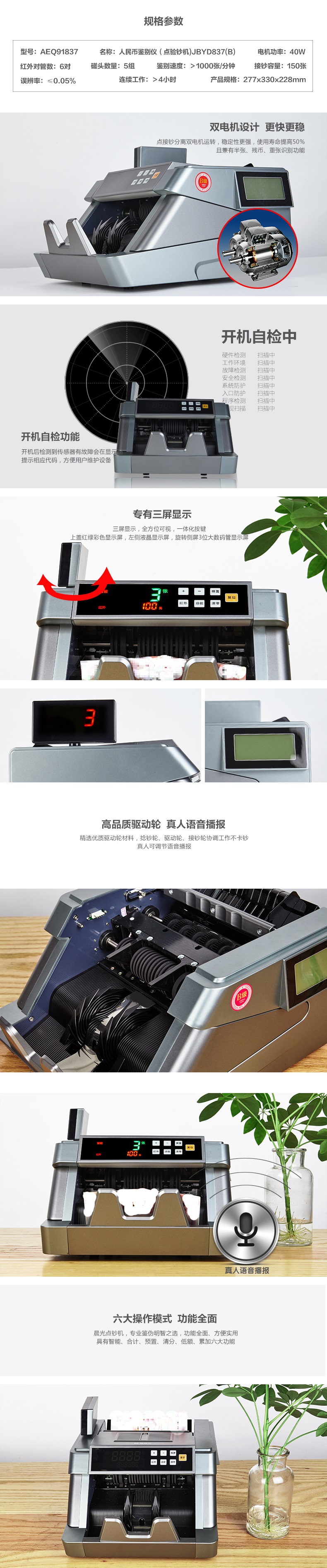 晨光人民幣鑒別儀點驗鈔機B類AEQ91837S 自營