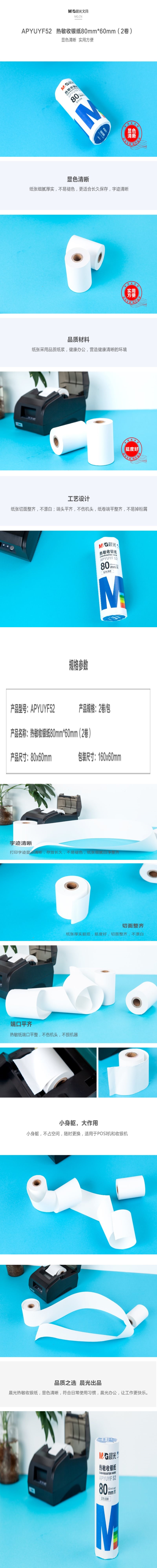 晨光熱敏收銀紙80MM*60MM(6筒 2卷/筒)APYUYF52 自營