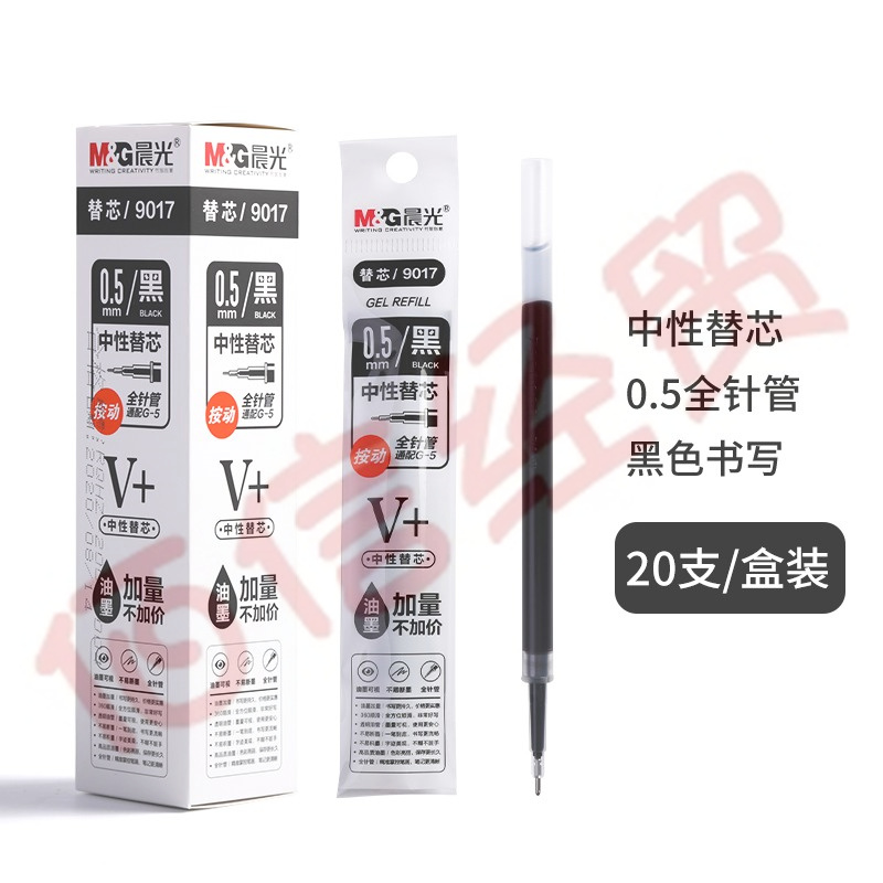 ■晨光優(yōu)品系列速干中性筆芯0.5按動子彈頭替芯G-5升級版 9017替芯V+全針管黑色20支 自營