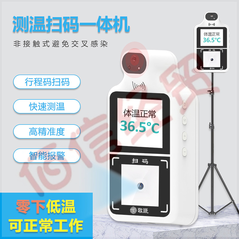 歌派(GEPAD)紅外線自動測溫儀 額手溫測溫槍 語音報警立式非接觸溫度計 測溫掃碼一體機X7 自營