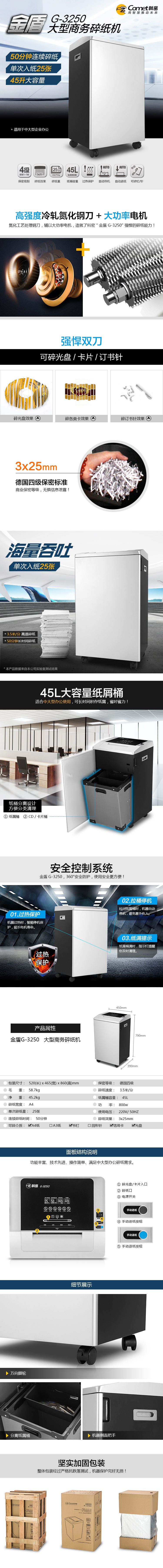 科密(Comet) G-3250大型碎紙機 長時間工業(yè)級碎紙機 40L大容量辦公商用文件顆粒粉碎機 自營