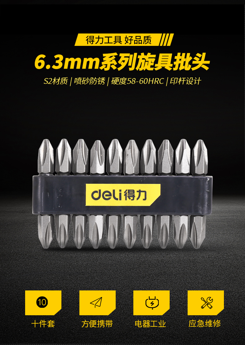 ■得力DL6901電動(dòng)螺絲刀強(qiáng)磁批頭十字風(fēng)批頭特級(jí)強(qiáng)磁圈披P頭s2手電鉆批頭套裝50mm 6.3MM系列旋具批頭PH2x50
