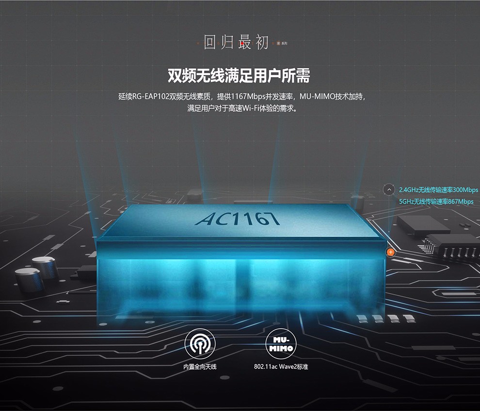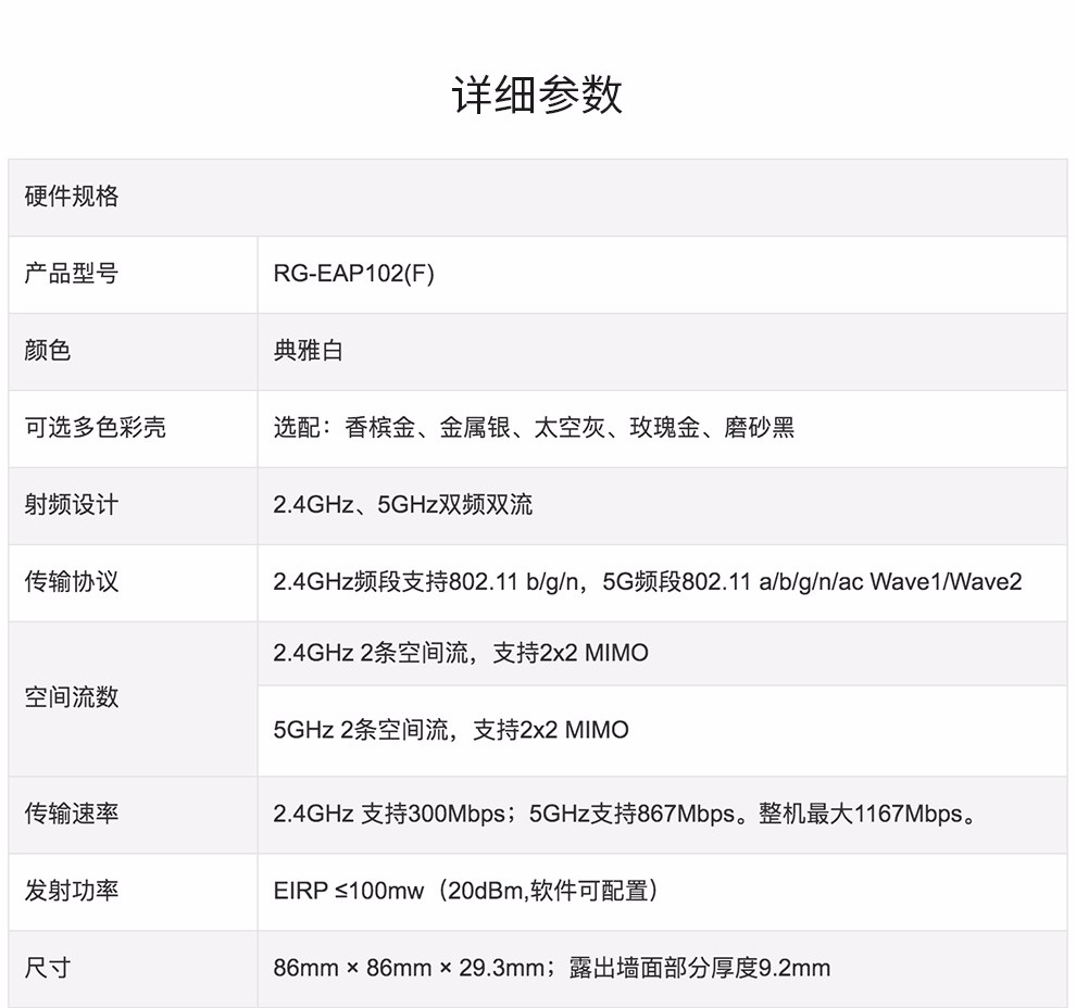 銳捷(Ruijie)無線AP面板式 雙頻1167M RG-EAP102(F) 無線接入點 白色 自營
