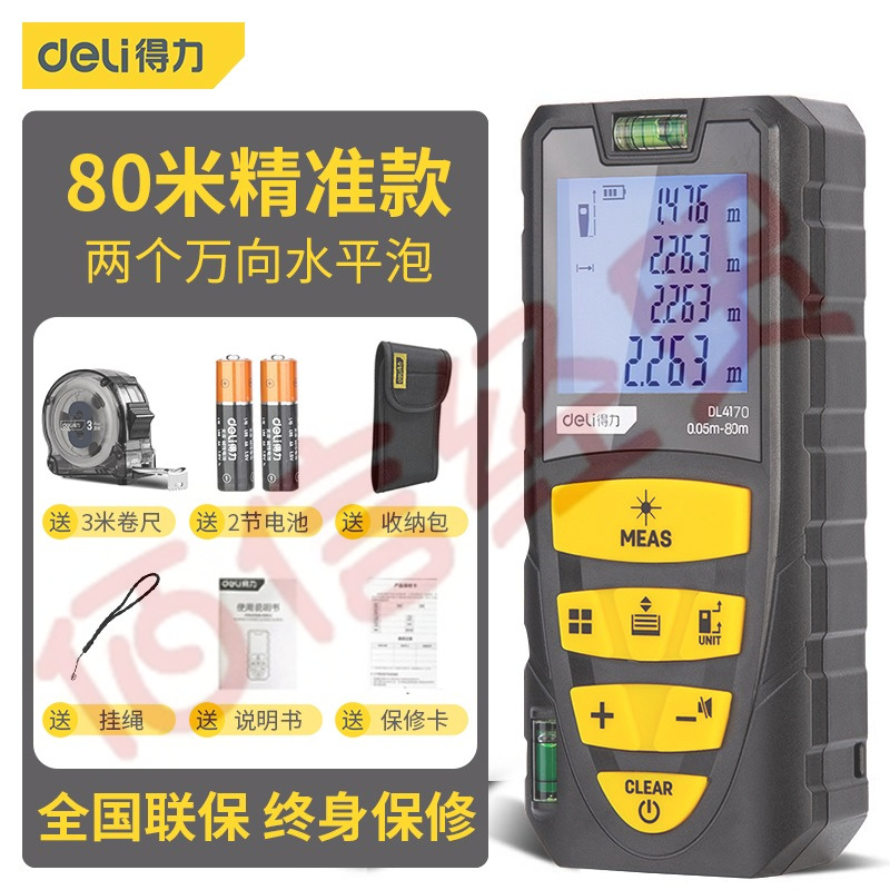 ■得力高精度手持式激光測距儀紅外線-激光測距儀80m DL4170 自營
