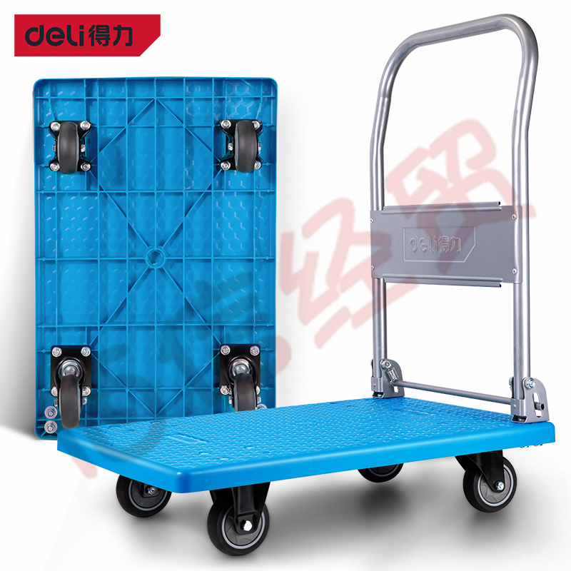■得力(deli) DL431150S加強(qiáng)輕音輪平板車手推車折疊手拉車小推車?yán)涇囁芰习徇\(yùn)車 小號(hào)73x47cm 承重約300斤 自營(yíng)