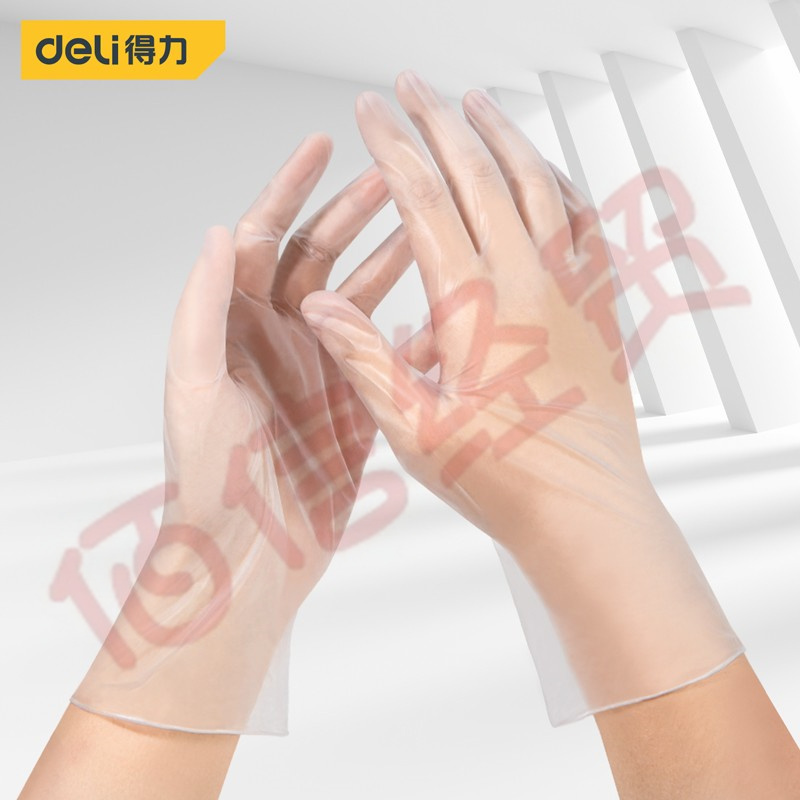 ■得力(deli)DL521050L 一次性透明PVC手套食品級透明勞保餐飲清潔【L碼】50只/盒