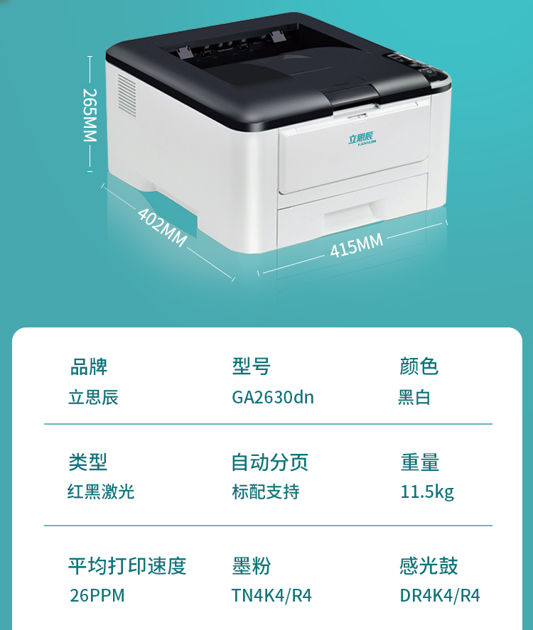 立思辰(LANXUM)A4紅黑激光打印機(jī)GA2630dn、A4幅面、紅黑雙色、網(wǎng)絡(luò)打印 自營